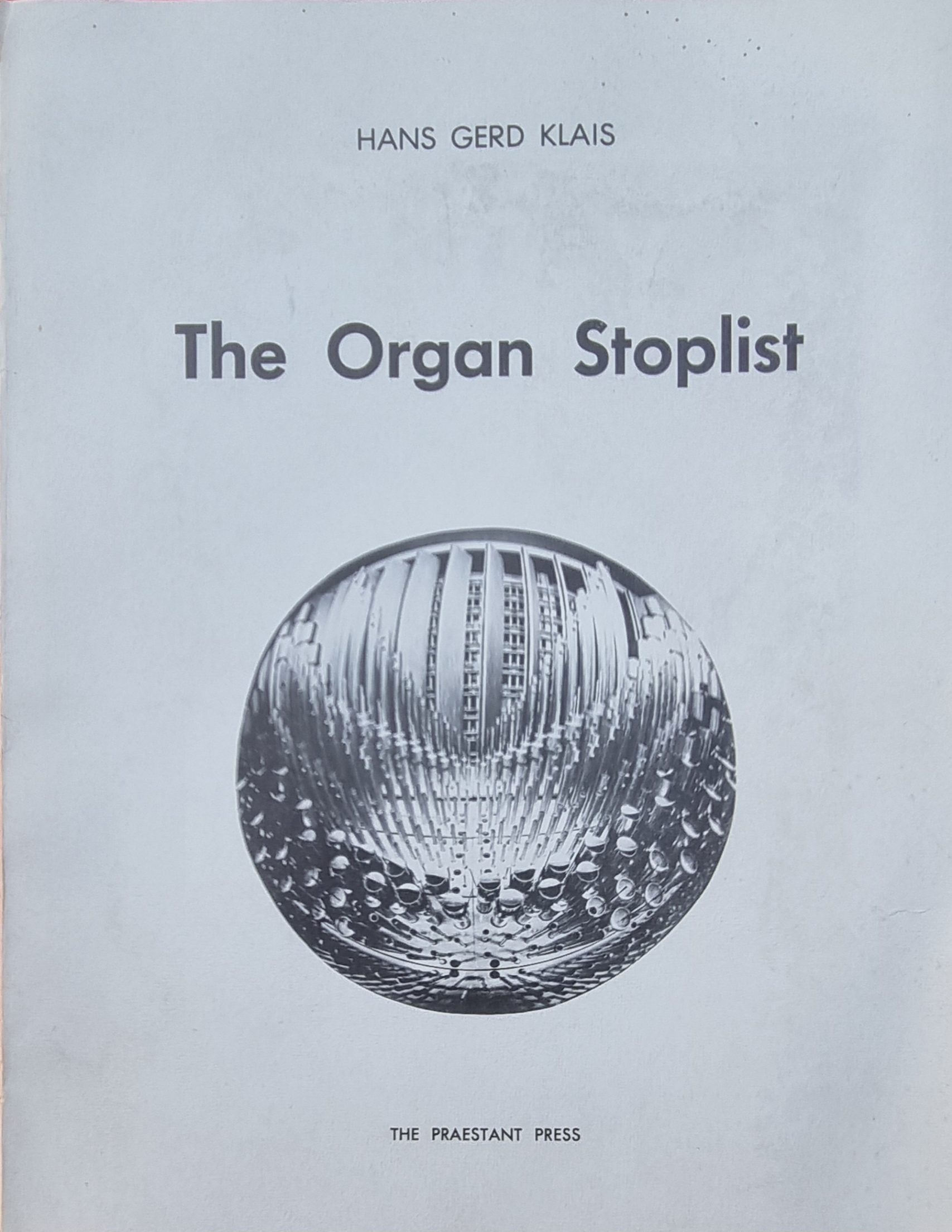 Klais, Hans Gerd: Reflections on the Organ Stoplist. Theory and Practice from the Organ Workshop. Delaware, The Praestant Press, 1975. Ca. 28 x 21 cm. 136 Seiten. Mit Illustrationen und Diagrammen. Illustrierter orig.-kartonierter Einband. Rücken etwas bestoßen. Text auf englisch.