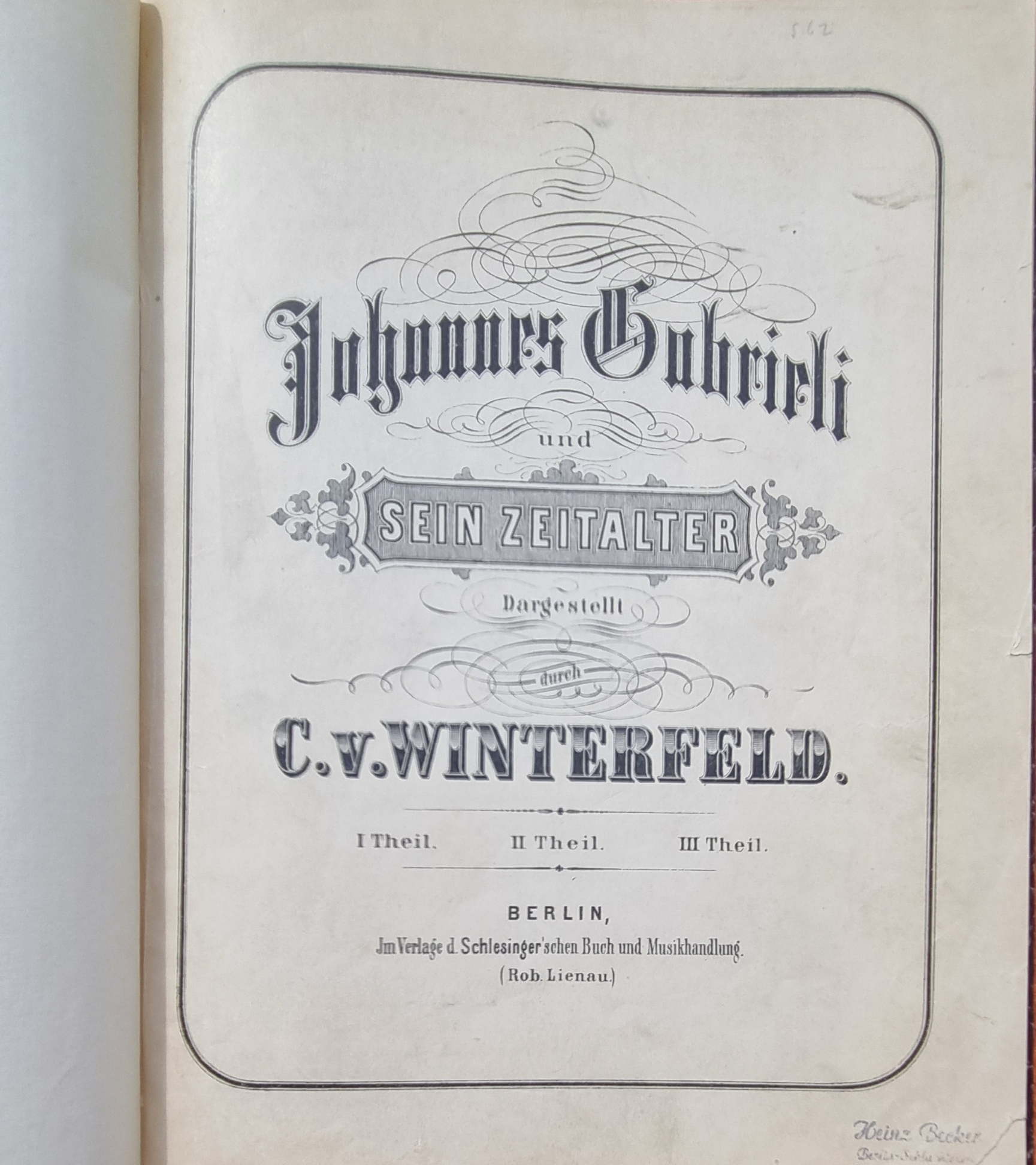 Winterfeld, Johannes Gabrieli und sein Zeitalter. Hier der 3. Teil: Notenband.