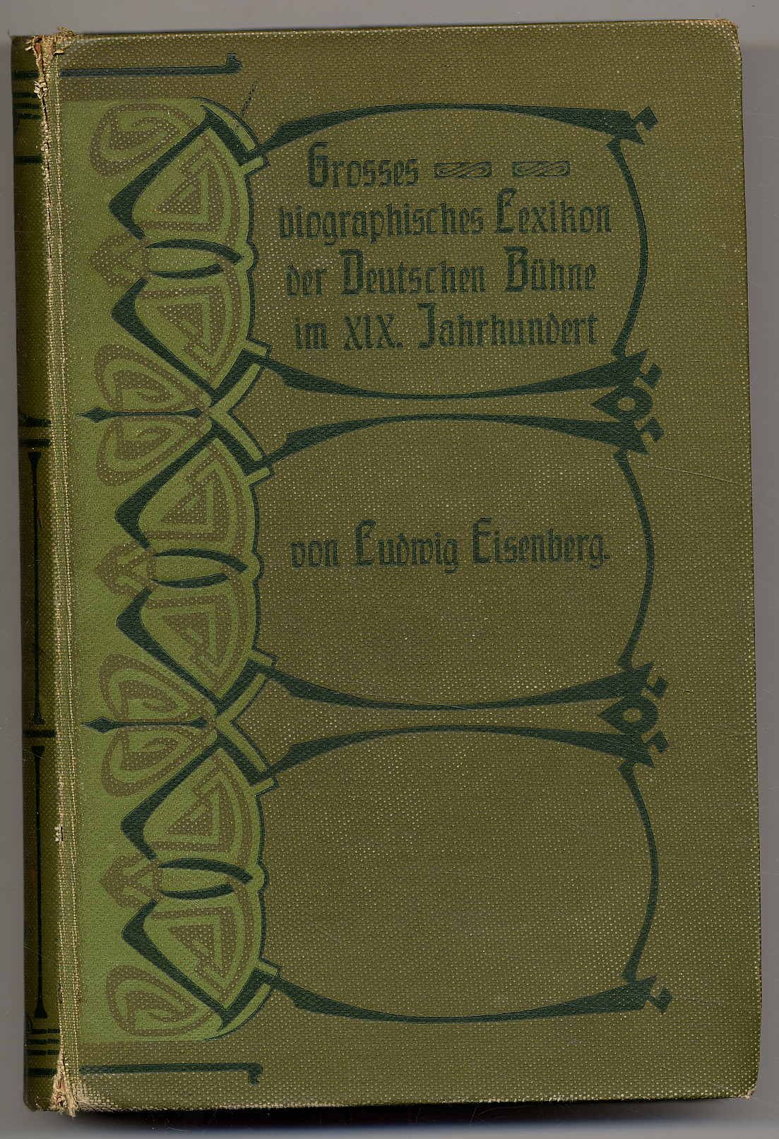 Eisenberg, Ludwig: Ludwig Eisenberg’s Großes biographisches Lexikon der Deutschen Bühne im XIX. Jahrhundert. Leipzig, Paul List, 1903. Ca. 25,5 x 17 cm (14) S., 1.180 S., (4) Seiten. Mit Titelbild mit 5 Porträts. Grüner Orig.-Leinenband. Rücken an kleinen Stellen etwas aufgeplatzt. Widmung auf Vorsatz. Sonst gutes Exemplar.
