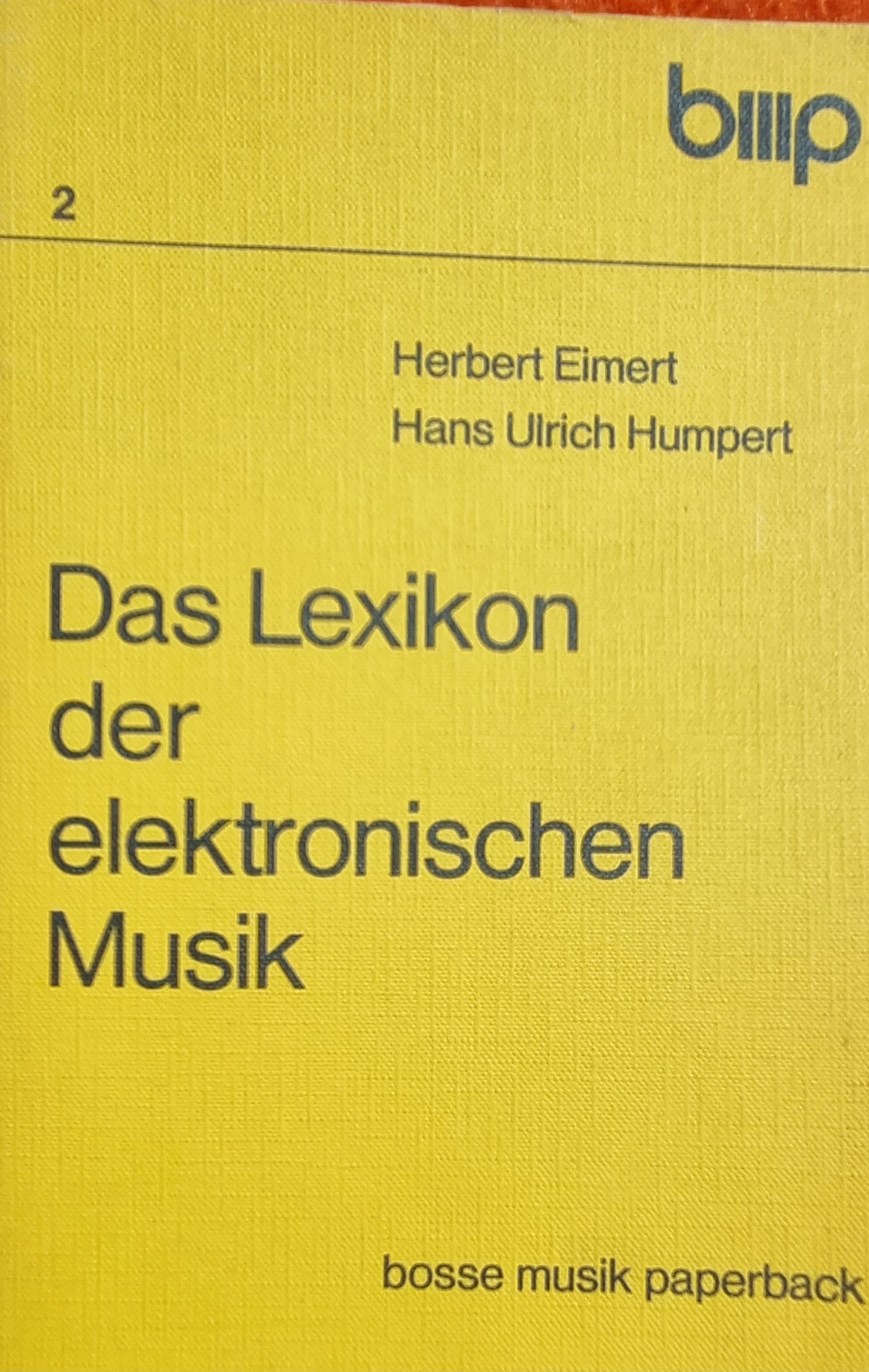 Eimert, Herbert und Hans Ulrich Humpert: Das Lexikon der elektronischen Musik. 2., ergänzte Auflage. Regensburg, Gustav Bosse, 1977. Ca. 20,5 x 13,5 cm. XIX S., 440 S., (4) Seiten. Mit einigen Illustrationen. Gelber Originalkartonierter Einband. Schnitt minimal angestaubt, jedoch gutes Exemplar.