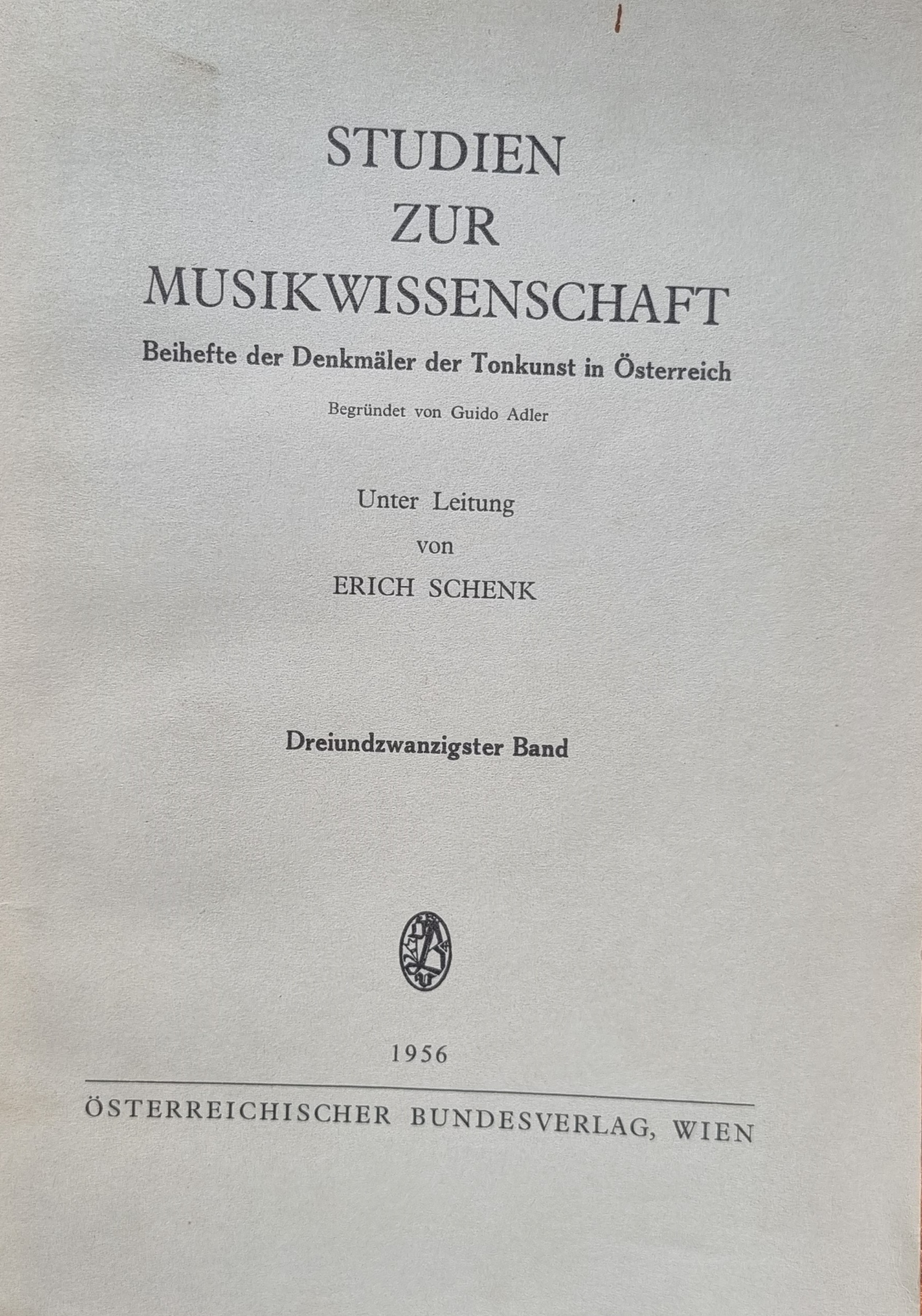 Schenk, Studien zur Musikwissenschaft. Beihefte der Denkmäler der Tonkunst in Ös…