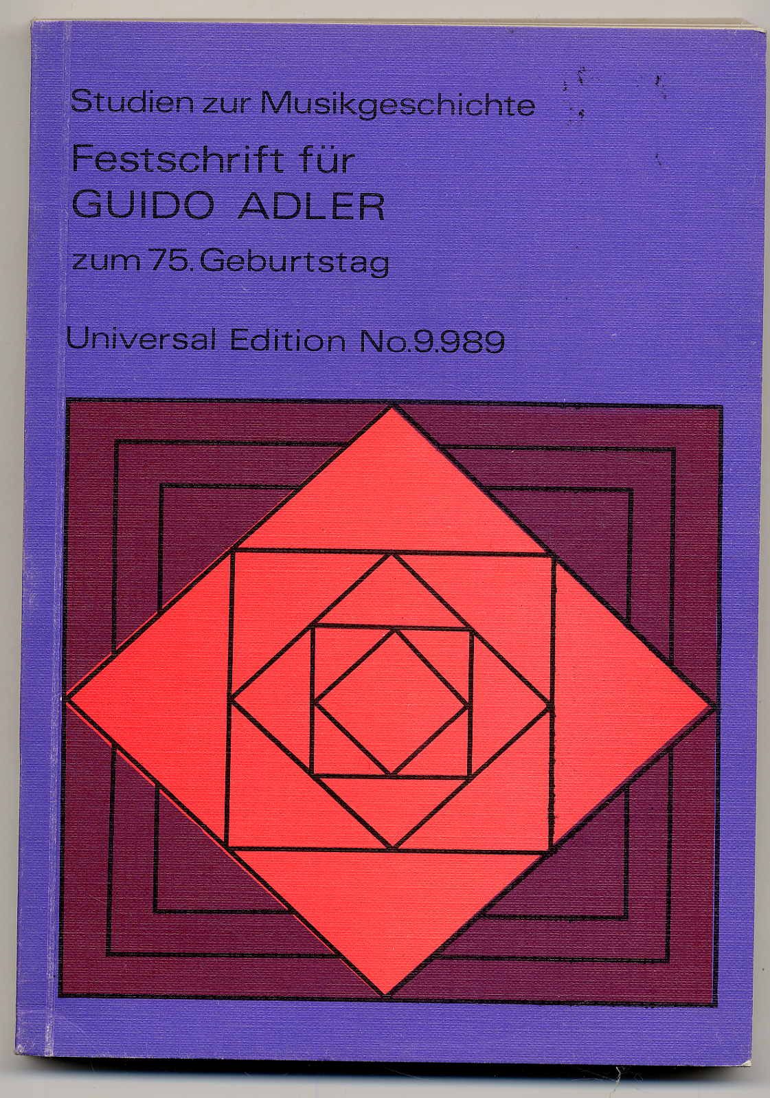 Studien zur Musikgeschichte. Festschrift für Guido Adler zum 75. Geburtstag. Studien zur Musikgeschichte. 2. Auflage (fotomechanische Reproduktion der 1. Auflage (1930)). Wien, Universal-Editioin, 1971. Ca. 24 x 17 cm. 224 Seiten. Mit Abbildungen und Notenbeispielen Illustrierter orig.-kartonierter Einband. Texte meist auf deutsch, teils englisch und französisch. Aus dem Inhalt u.a.: E. Closson: Une nouvelle série de hauthois égyptiens antiques; I. Krohn: Der tonale Charakter gregorianischer Rezitative; Th. Kroyer: Zur Chiavettenfrage; J.B. Trend: Spanish madrigals and madrigal-texts; A. Einstein: Annbale Padoanos Madrigalbuch. Gutes Exemplar.
