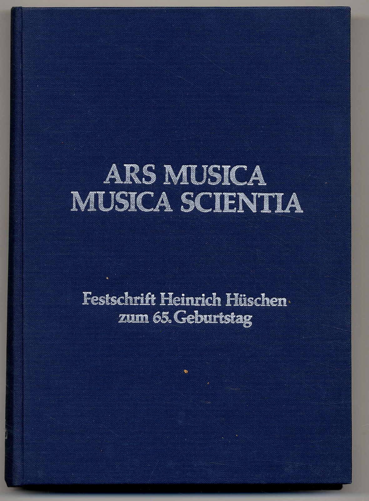 Altenburg, Detlef (Hrsg.): Ars Musica musica scientia. Festschrift Heinrich Hüschen. Sonderauflage für Verlag der Arbeitsgemeinschaft für rheinische Musikgeschichte. 1980. Ca. 24,5 x 17 cm. (10) S., 473 Seiten. Mit Porträtabbildungen und zahlreichen Notenbeispielen. Blauer Orig.-Leinenband. Aus der Reihe: Beiträge zur Rheinischen Musikgeschichte, Band 126. Überreicht zum 65. Geburtstag. Aus dem Inhalt u.a.: M.A. Barbosa: Einführung in die Musikgeschichte Portugals; C. Dahlhaus: Über das System der musiktheoretischen Disziplinen im klassisch-romantischen Zeitalter; S. Kross: Vom „roten“ und anderen Brahms-Festen; N. B. Reich: Louise Reichardt; G. Thomas: Haydn Anekdoten, G. Wehmeyer: Die Kunst der Fingerfertigkeit und die kapitalistische Arbeitsideologie-