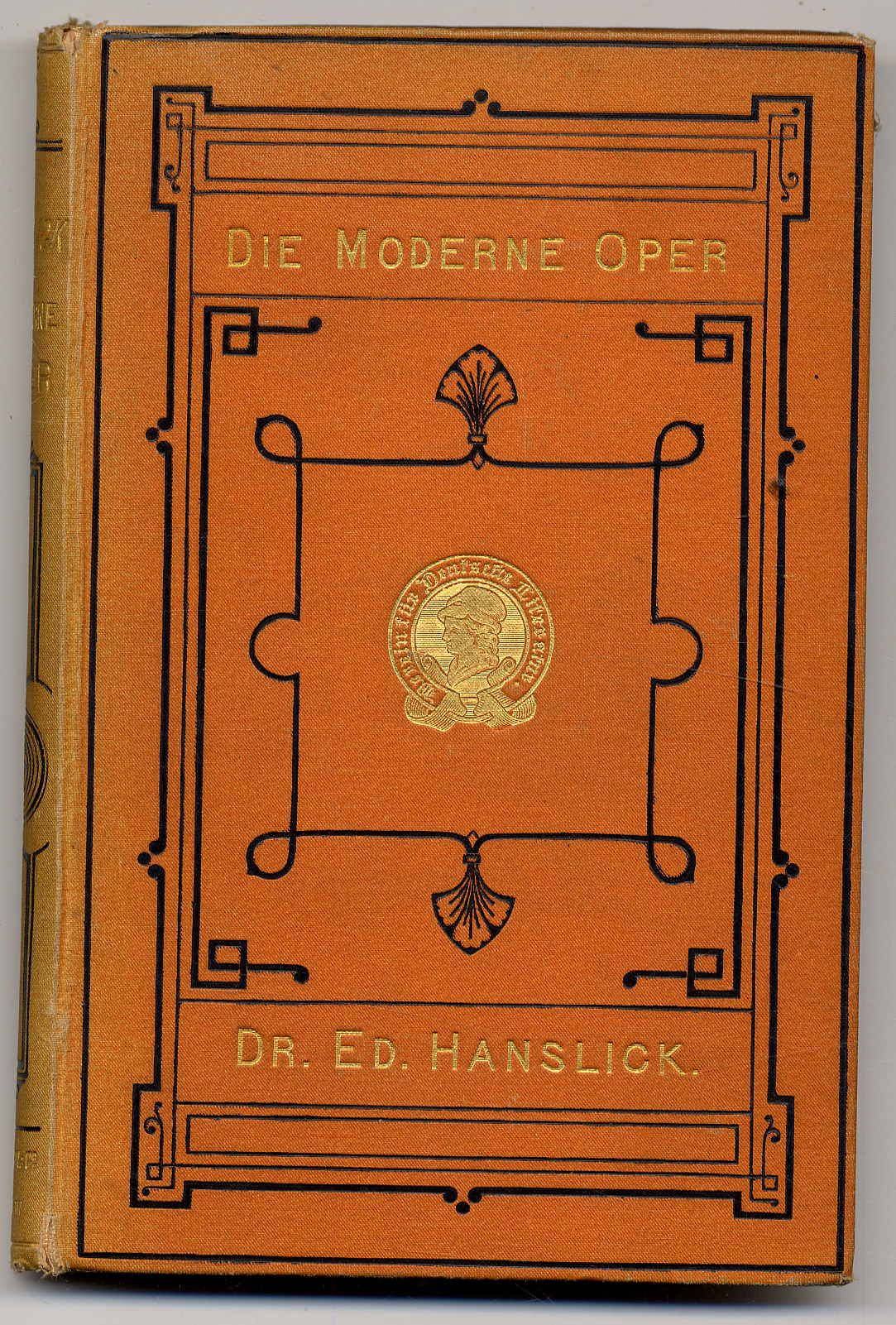 Hanslick, Eduard: Die moderne Oper. Kritiken und Studien. 3. unveränderte Auflage. Berlin, J. Hofmann, 1877. Ca. 20,5 x 14 cm. VIII S., (2) S., 341 Seiten. Orig.-Leinenband. Mit Exlibris. Besitzvermerk auf Vorsatz. Seiten papierbedingt leicht gebräunt, sonst gutes Exemplar.