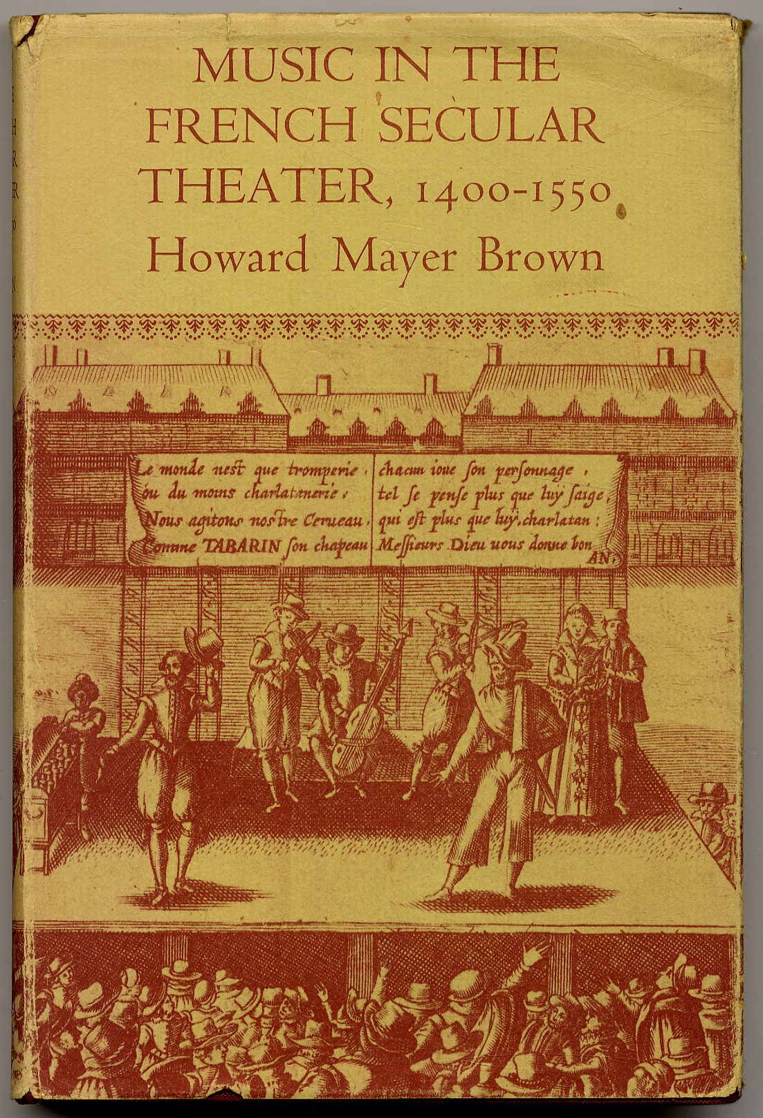 Brown, Howard Mayer: Music in the French secular theater, 1400-1550. Cambridge, Harvard University Press, 1963. Ca. 24 x 16 cm. X S., (2) S., 338 Seiten. Mit Illustrationen. Roter Orig.-Leinenband mit Schutzumschlag. Gutes Exemplar. Text auf Englisch.