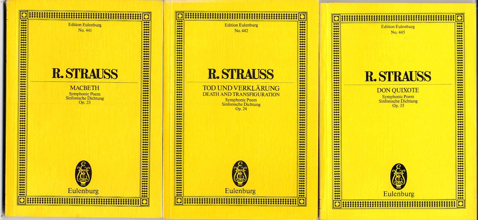 Edition Eulenburg: Bände 441 Macbeth; 442 Tod und Verkklärung; 445 Don Quixote.