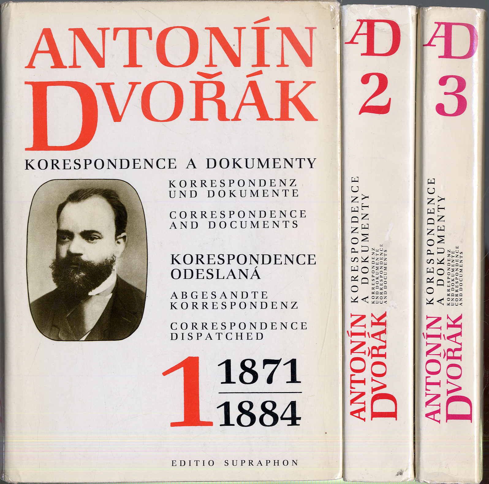 Dvorák – Anton Dvorák Korespondence a dokumenty. Korrespondenz und Dokumente. Bände 1-3. Prag, Editio Supraphon, 1987/1989. Ca. 24 x 17 cm. 485 Seiten; 419 Seiten; 455 Seiten. Orig.-Leinenbände mit Schutzumschlag. Band 1: Abgesandte Korrespondenz 1871 – 1884; Band 2: 1885 – 1889; Band 3: 1890-1895. Gutes Exemplar.