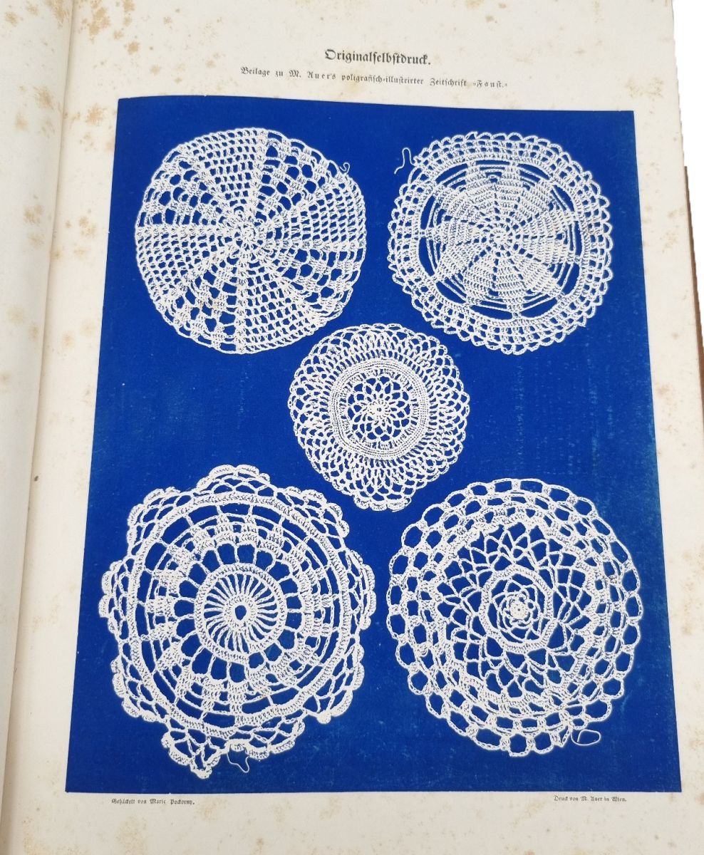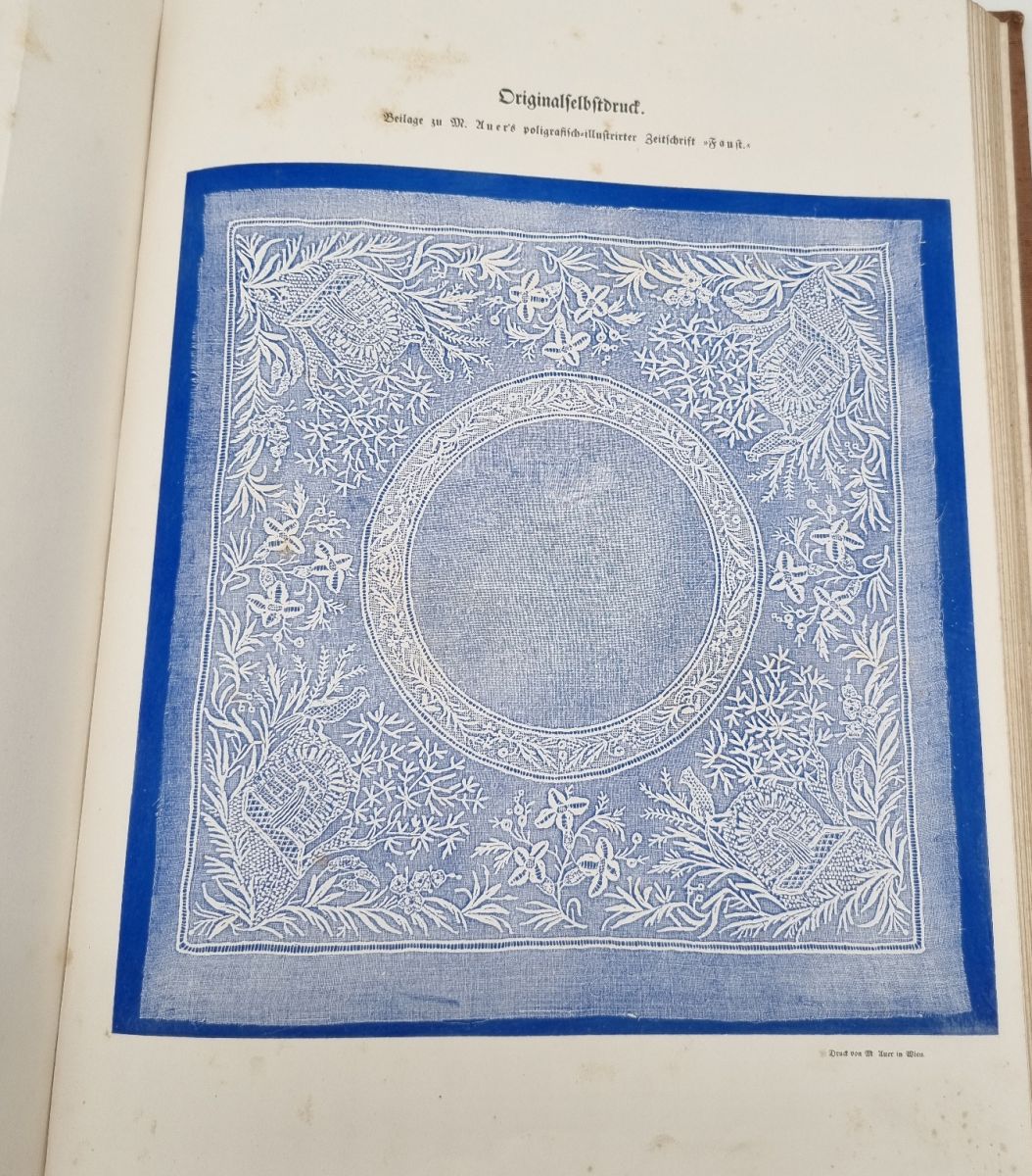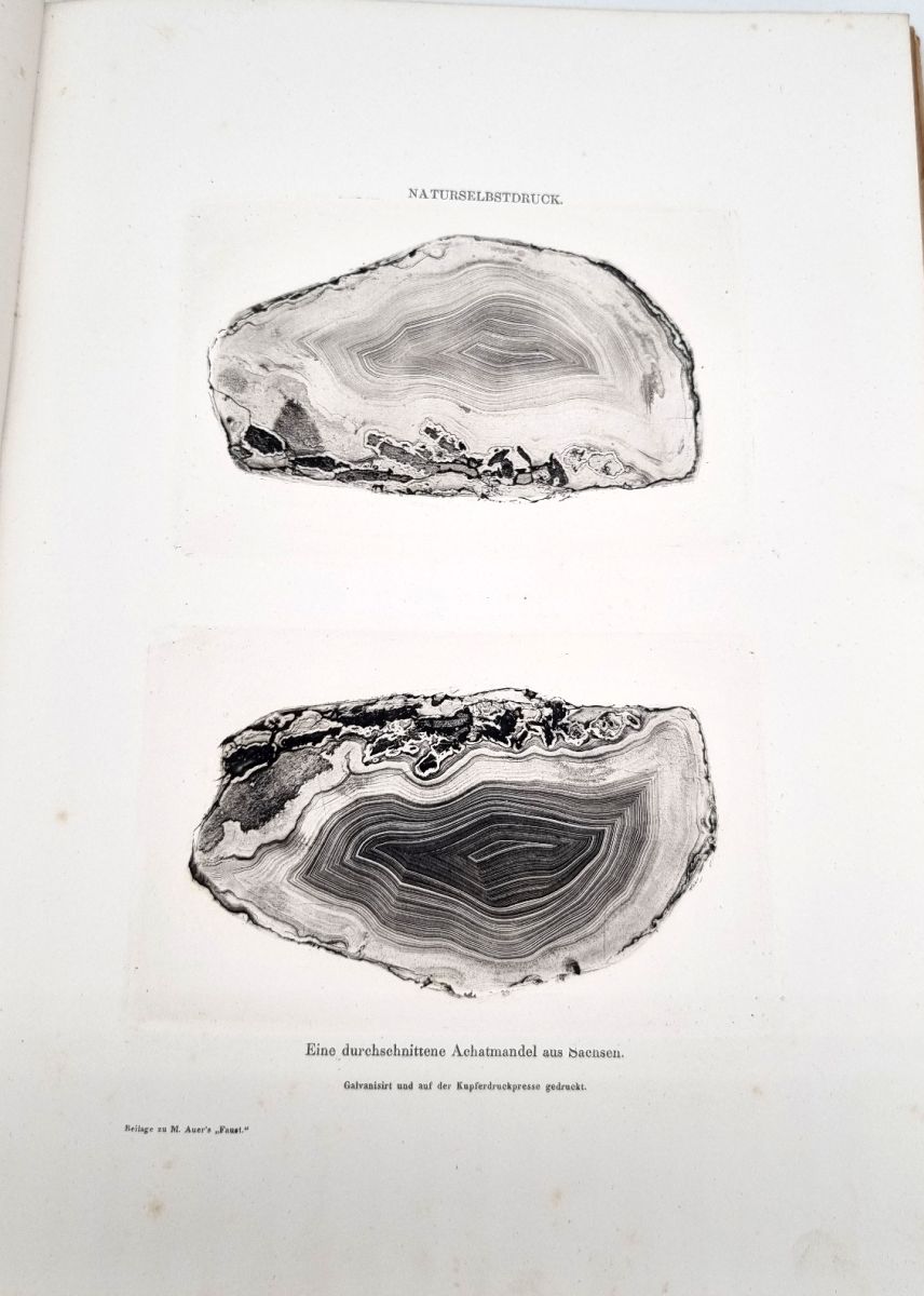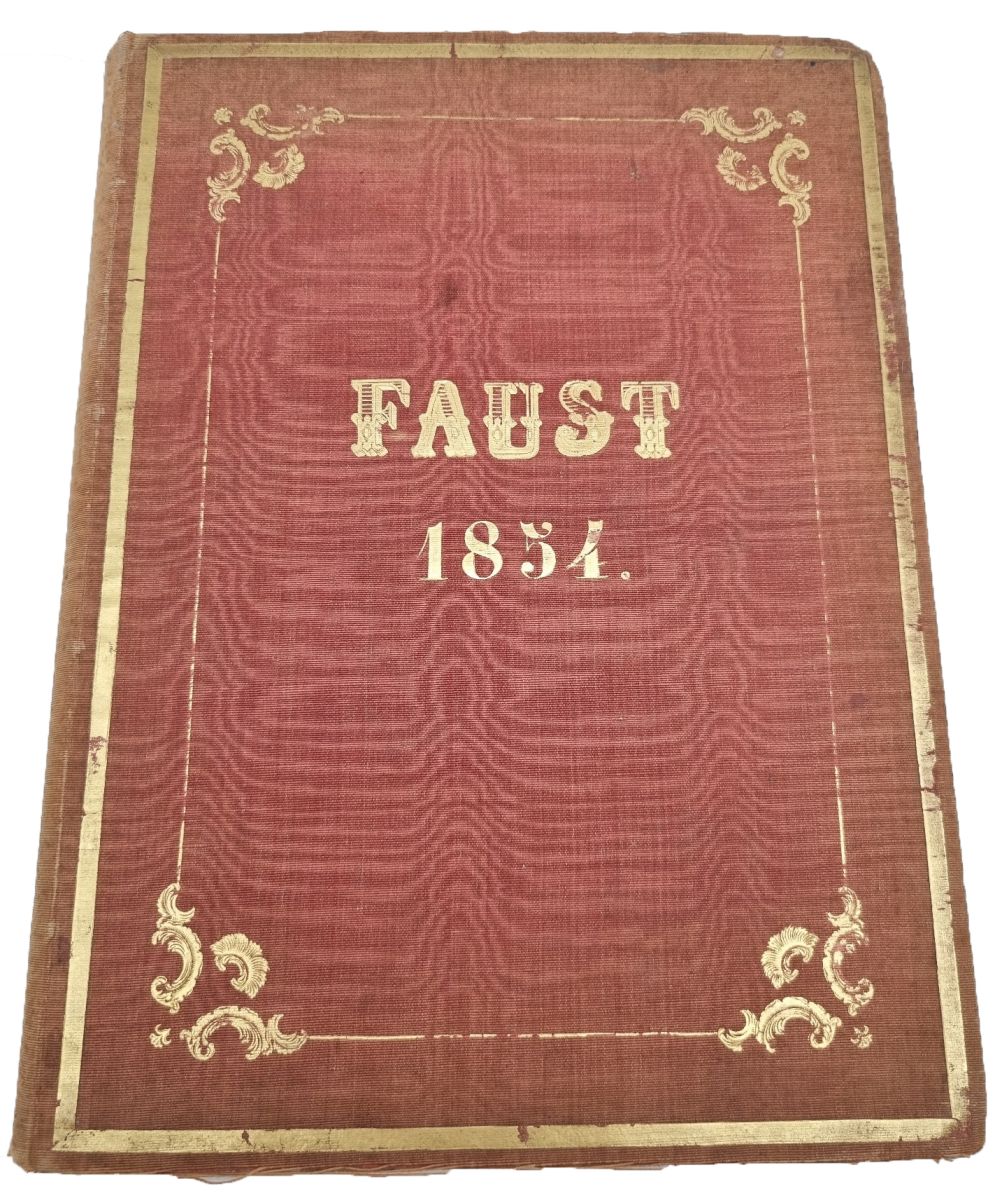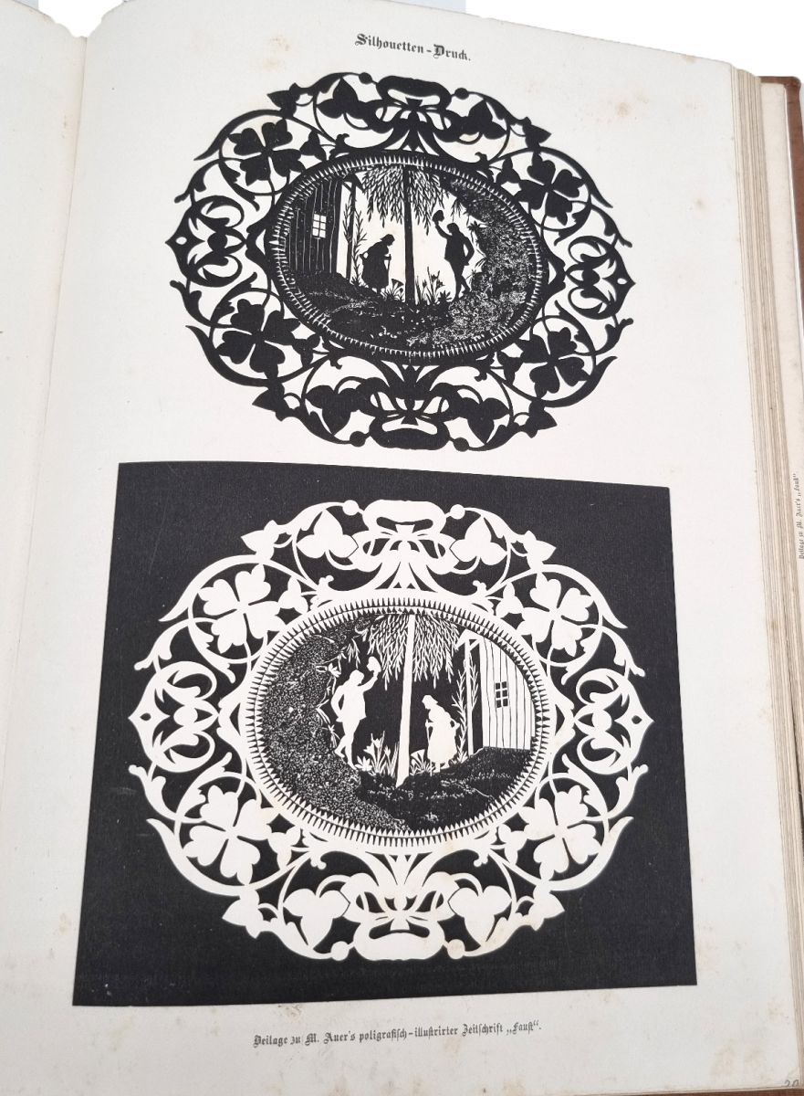 Faust. Poligrafisch-illustrirte Zeitschrift für Kunst, Wissenschaft, Industrie und Unterhaltung. Redigirt von Hermann Meynert unter literarischer Betheiligung nachstehender Schrifsteller: Alois Auer, Amand Baumgartner, Braun v. Braunthal, Dr. Castelli, Wilhelm Chezi, Friedrich Dornau, A.E. v. Eitelberger, M. Falk, J.A.F. Fladung, Lud. Aug. Frankl, Baron Hammer-Purgstall, K.a. Kaltenbrunner, Kratochvilla, Malven, Dr. Märzroth, Dr. Hermann Meynert, Dr. S.H. Mosenthal, H. Pfeiffer, Ranftl, Dr. Moriz Reich, Freiherr v. Sacken, Andreas Schuhmacher, Anton Xaver Schurz, C. E. Seelieb, Johann Gabriel Seidl, Stainhauser, Emanuel Straube, Dr. Johann Nepomuk Vogl, Voit, A. Worring, Franz Xaver Wurm etc. etc. Mit artistischen Beiträgen von Benedetti, J. Bucher, Breyer, v. Exter, Peter Fendi, Franz, Carl Geiger, A. Geyer, Conrad Grefe, Hösel, Christian Meyer, Leander Ruß, Mößmer, Marie Pokorny, Piil, Rahl, Ranftl, A. Schindler, Torsch, Treml, Prof. Weiß, Würbl, Zastiera etc. etc. 1. Jahrgang. Wien, Druck und Verlag von M. Auer, 1854. Ca. 35 x 25,5 cm. 192 Seiten, mit zahlreichen Textholzschnitten und allen 72 Kunst-Beilagen verschiedener Druckfächer. Leineneinband der Zeit mit reicher Goldprägung. Komplettes Exemplar mit allen Beilagen des wesentlichen 1. Jahrgangs (bis 1861 erschienen 8 Jahrgänge) dieses grundlegenden Werkes über den „Naturselbstdruck“, u.a. mit folgenden Abhandlungen von Alois Auer von Welsbach (1813-1869): „Der poligrafische Apparat; Ueberblick des technischen Verfahrens und die Anwendung der verschiedenen Druckkünste“; „Die Entdeckung des Naturselbstdruckes oder die Erfindung, von ganzen Herbarien, Stoffen, Spitzen, Stickereien und überhaupt allen Originalien und Copien, wenn sie auch noch so zarte Erhabenheiten und Vertiefungen an sich haben, durch das Original selbst auf einfache und schnelle Weise Druckformen herzustellen, womit man sowohl weiß auf gefärbtem Grunde drucken und prägen, als auch mit den natürlichen Farben auf weißem Papiere Abdrücke, dem Originale identisch gleich, gewinnen kann, ohne daß man einer Zeichnung oder Gravure auf die bisher übliche Weise durch Menschenhände bedarf“; „Eigenthumsstreit bei neuen Erfindungen, insbesondere bei dem in der k. k. Hof- und Staatsdruckerei in Wien entdeckten Naturselbstdrucke“. Alle 72 Beilagen (darunter 10 Naturselbstdrucke und 7 Originalselbstdrucke) entsprechend dem Inhaltsverzeichnis enthalten: 1) Österreichs Bitte (Musikbeilage); 2) Peter Cornelius (Stahlstich, geschabt von Christian Meyer); 3) Mutter und Kind (Stahlstich, geschabt von Thomas Benedetti); 4) Alfabeten-Stammbaum (Litografirte Gravüre); 5) Die Kinder und der Vogel (Radirung in Stahl); 6) Häckelmuster von Marie Pokorny (Originalselbstdruck); 7) Moose (Naturselbstdruck); 8) Der steierische Hirtenknab von Ranftl (Kreidezeichnung); 9) Sebastopol und Adrianopel (Gravüre in Stein); 10) Moose (Naturselbstdruck in Farben); 11) Spitzen (Originalselbstdruck); 12) Ideal einer Landschaft (Radirung in Kupfer); 13) Das Industrie-Ausstellungsgebäude in München (Zinkradirung und Umdruck); 14) Ein Kroaten-Vorposten (Kupferdruck); 15) Die Zwillinge (Kupferstich); 16) Der kleine Musikant (Schabmanier); 17) Tiroler Welden-Freiwilliger (Kupferstich); 18) Constantinopel und Jassy (Zinkradirung); 19) Moose (Naturselbstdruck); 20) Grundplan des Industrie-Ausstellungsgebäudes in München (Litografie); 21) Die ersten Studien (Kupferstich); 22) Karl Heinrich Rahl (Kupferstich); 23) Eine durchschnittene Achatmandel aus Sachsen (Naturselbstdruck); 24) Die Rückkehr aus dem Feldzuge (Kupferstich); 25) Peter Heß (Stahlstich); 26) Der Dorf-Dilettant (Kupferstich); 27) Ideale Landschaft (Radirung in Kupfer); 28) Die Sulinamündung und Rustschuk (Zinkradirung); 29) Der Wasserfall (Holzätzung nach Ranftl’schem Verfahren); 30) Der Haase (Originalselbstdruck); 31) Der Hundskopf (Galvanografie); 32) Der Wiener Freiwillige (Kupferstich); 33) Das durchlöcherte Bild (Stahlstich); 34) Der Auerhahn (Originalselbstdruck); 35) Das Schachspieler (Xilografie); 36) Moose (Naturselbstdruck); 37) Wilhelm Kaulbach (Stahlstich); 38) Dorf aus Oberösterreich (Xilografie); 39) Die Tollkirsche (Naturselbstdruck); 40) Odessa (Umdruck auf Stein); 41) Kaiser Friedrich III Grabdenkmal im St Stefansdome zu Wien (Kupferstich, mit großem Einriss); 42) Auszeichnung und Entschluß (Radirung im Kupfer); 43) Lenaus Grabmal (Kupferstich); 44) Bomarsund (Umdruck auf Stein, mehrfach gefaltet, mit kleineren Randeinrissen); 45) Ideale Landschaft (Radirung in Kupfer); 46) Friedrich Hebbel (Stahlstich); 47) Flügelaltar zu Bartfeld in Ungarn (Kupferstich); 48) Kars und Bajasid (Umdruck auf Stein); 49) Die Krim-Expedition (Xilografischer Umdruck, doppelblattgroß); 50) Moose (Originalselbstdruck); 51) Weißstickerei (Originalselbstdruck); 52) Alle fünf Londoner Weltausstellungs-Münzen von 1851; 53) Farrenkraut im Naturselbstdruck; 54) Alfabete für Blinde; 55) Das Mädchen mit dem Medaillon (Galvanografie); 56) Spitzenkragen (Originalselbstdruck); 57) Zum Ereignis von Bomarsund (Xilografischer Umdruck); 58) Die Admiralität im türkisch-russischen Feldzug (Xilografischer Umdruck); 59) Ein großes Eichenblatt (Naturselbstdruck); 60) Silhouettendruck; 61) Der Sultan (Xilografischer Umdruck); 62) Holzdurchschnitte, Tafel 1 (Naturselbstdruck); 63) Madonna von Titian (Kupferstich); 64) Tipografische Ornamentik (Festgedicht); 65) Bibel-Abdruck; 66) Dürers Holzschnitte; 67) Mathias Ranftl (Stahlstich in geschabter Manier); 68) Glasdruck; 69) Algen (Meerpflanzen im Naturselbstdruck); 70) Gutenberg und Faust (Tipografischer Farbendruck, Exter’s neues Verfahren); 71) Jesukind von Titian (Kupferstich); 72) Ansicht von Wien (Chemitipie nach einer Fotografie). Einband etwas ausgeblichen, Kanten stärker bestoßen. Die Seiten und Tafeln teils stockfleckig, siehe auch Beschreibung bei den einzelnen Illustrationen. Vollständige Jahrgänge sind sehr selten, die Besitzer entfernten die dek