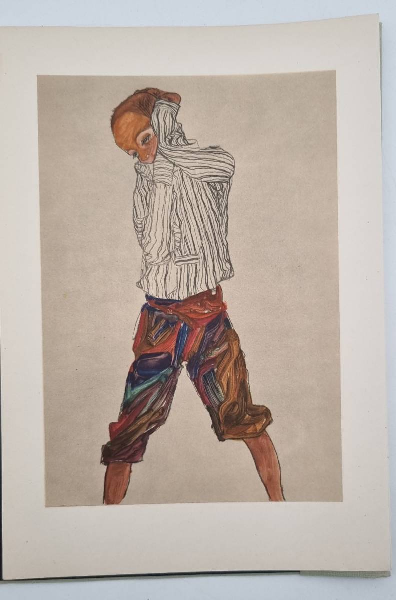 Benesch, Otto: Egon Schiele als Zeichner. Wien, Verlag der österreichischen Staatsdruckerei, [1951]. Ca. 34 x 23,5 cm. textheft 13 S., (1) Seite; 24 (davon 16 farbige) lose Tafeln. Original-kartonierte Mappe. Einband etwas lichtrandig. Ohne das Blatt mit dem Tafelverzeichnis, sonst gutes Exemplar mit den schön gedruckten Tafeln, darunter die Portraits von Arnold Schönberg, Franz Martin Haberditzl, der Mutter und Schwester des Künstlers, Selbstbildnisse. Die Tafeln rückseits mit Bildlegende und Provenienz. Der Einbandentwurf (unter Verwendung der Signatur Schieles) der grünen Mappe stammt von Epi (Elfriede) Schllüsselberger (1926-2023, Wiener Grafikerin und Kostümbildnerin). Otto Benesch (1896-1964), Sohn des Kunstsammlers Heinrich Benesch, einem der ersten und wichtigsten Förderer Egon Schieles, wuchs in engem Kontakt mit moderner Kunst auf. Nach dem Studium der Kunstgeschichte in Wien arbeitete er ab 1920 am Kunsthistorischen Museum und später an der Albertina. 1938 zur Emigration gezwungen, lehrte er in den USA, u.a. in Harvard und Princeton. 1947 kehrte er nach Wien zurück, wo er bis 1962 als Direktor der Albertina den Aufbau einer bedeutenden Sammlung moderner Graphik prägte. Als außerordentlicher Professor für Kunstgeschichte und Präsident des Dokumentationsarchivs des österreichischen Widerstandes setzte er sich intensiv mit der NS-Vergangenheit auseinander.