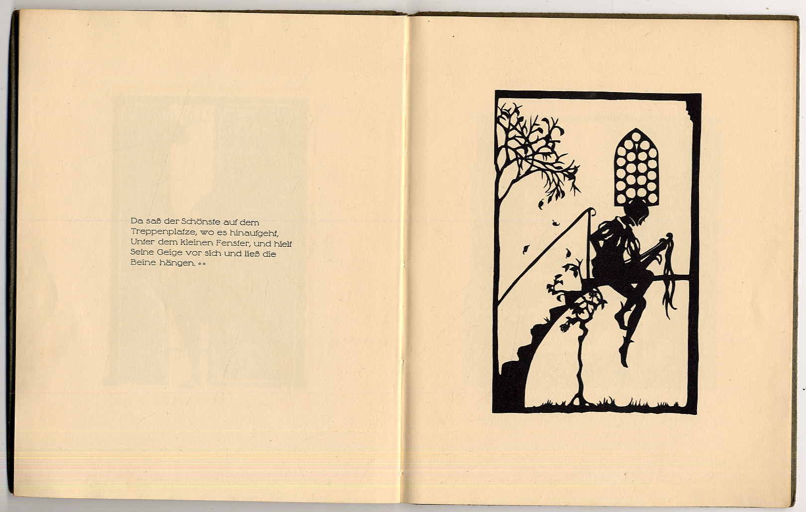 Günther, Agens: Bilder aus Seelchens Kinderjahren. Aus „Die Heilig eund ihr Narr“ von Agnes Günther. Hannover, J. C. König & Ebhardt, 1919. Ca. 25,5 x 20,5 cm. (28) Seiten. Mit Scherenschnitten von Tilla Ebhardt. Orig.-Pappband mit goldgeprägter Deckelillustration. Rücken leicht bestoßen, sonst gutes Exemplar. Mit 12 ganzseitigen Scherenschnittillustrationen.