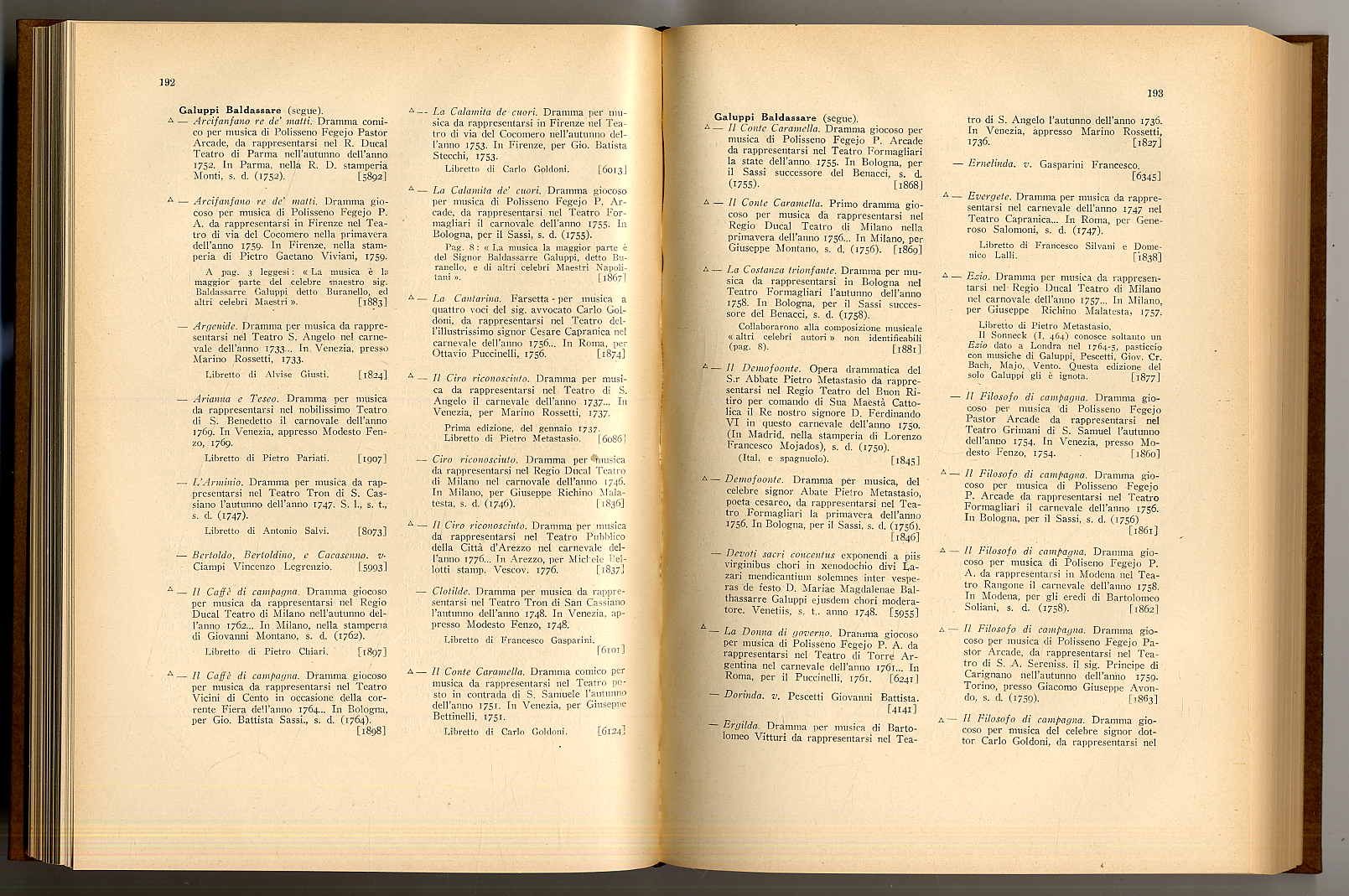 Sesini, Libretti d’Opera in Musica. Tomo Primo (all pubished; alles Erschienene)…