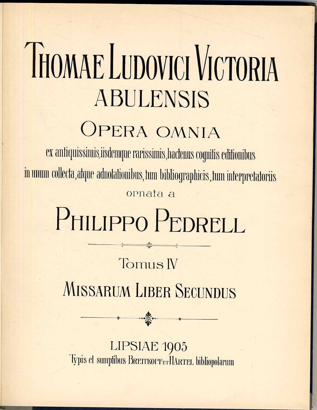 Pedrello, Thomae Ludovici Victoria abulensis. Opera Omnia Ornata A Tomus IV. Mis…